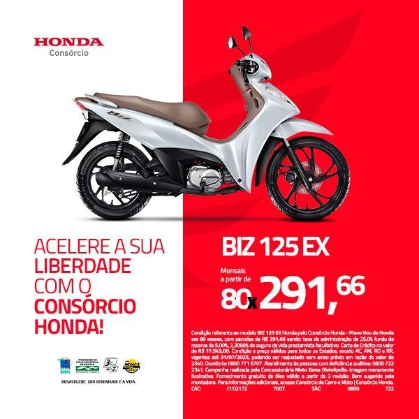 Totalmente equipada, a  nova Honda Biz EX  garante comodidade e praticidade para você ir e vir tranquilamente.
